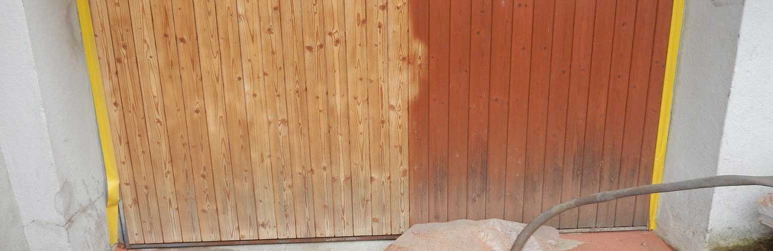 Vier Quadratmeter Holz-Tor aufhübschen - das war der Auftrag. Der war mit dem IBIX Strahlgerät schnell und sauber erledigt. So war der Spuk auch schon nach 30 Minuten vorbei.